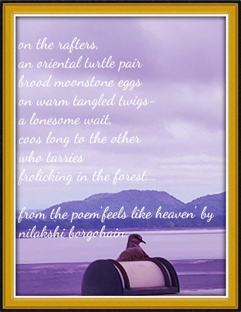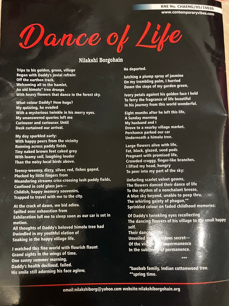 Nilakshi transports the reader to the land of the Luit with her verdant narrative encapsulated in the starred meanings of the flora and fauna of the indigenous habitat. The grand and majestic river’s fragrance shrouded in the stanzas soothe the senses of the readers in the poem