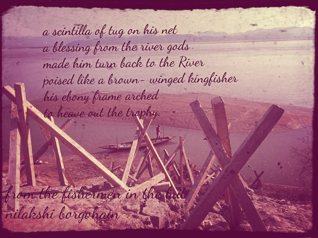 The collection of these poems addressed to the Brahmaputra river i.e. the Luit, shall do justice, if we endeavour to read them between the lines of Santiago’s optimism personified in the ‘Old man and the Sea’ and the mystic Manu’s glimpse of the dawn after the proverbial mythological apocalyptic deluge. The ‘break of dawn’ in a poem dawns a much awaited ray of hope and optimistic omens to open the door for fresh lease of life. Nilakshi’s turbulent mindfulness finds solace at ‘dawn’ in the poem ‘The Fisherman in the Luit. To quote: