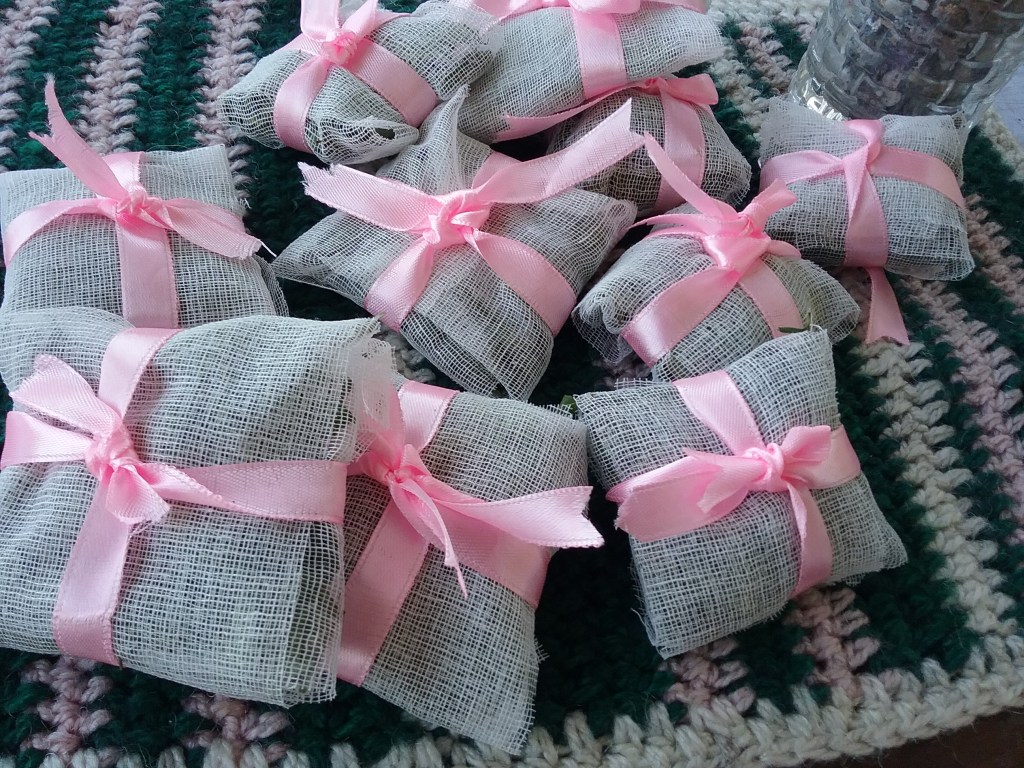A few days ago, a storm broke a heavy branch from my neem tree and I was left with a basketful of neem leaves.I washed and dried the mature leaves and made pouches with gauze and pink ribbons and placed them around the house, the cupboards, book shelfs, kitchen etc. as an insect repellent.
